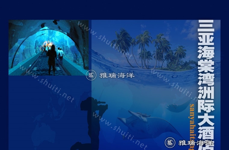 雅瑞海洋的海洋馆设计工程工艺有鲜明的特色:为确保水下造景的防水、防腐及抗压功能。充分使用玻璃钢易成型的特色,用作模具的载体材料,同时玻璃钢具有防渗、防腐及杰出强度,处理了水下景象施工中遇到的困难。